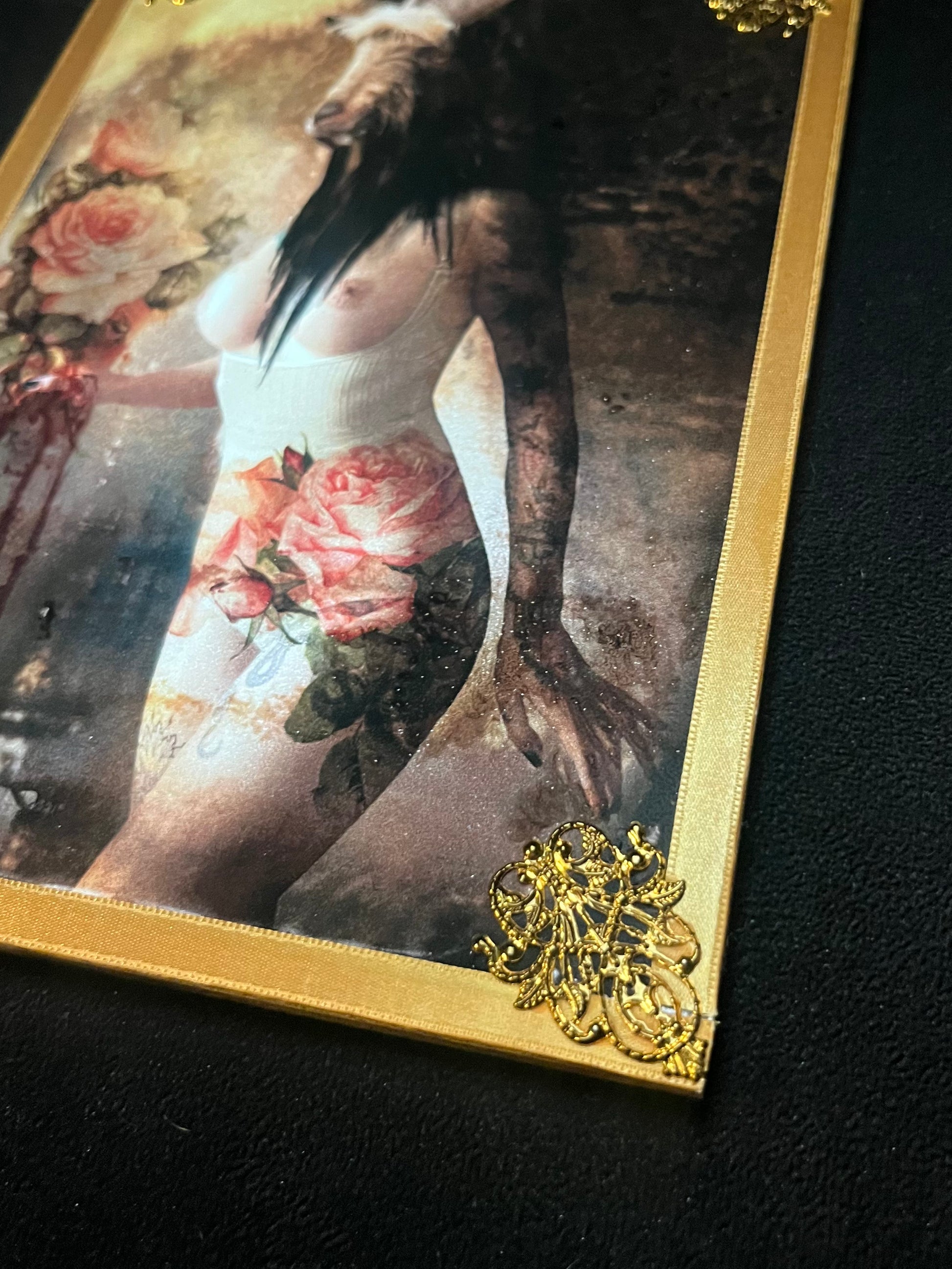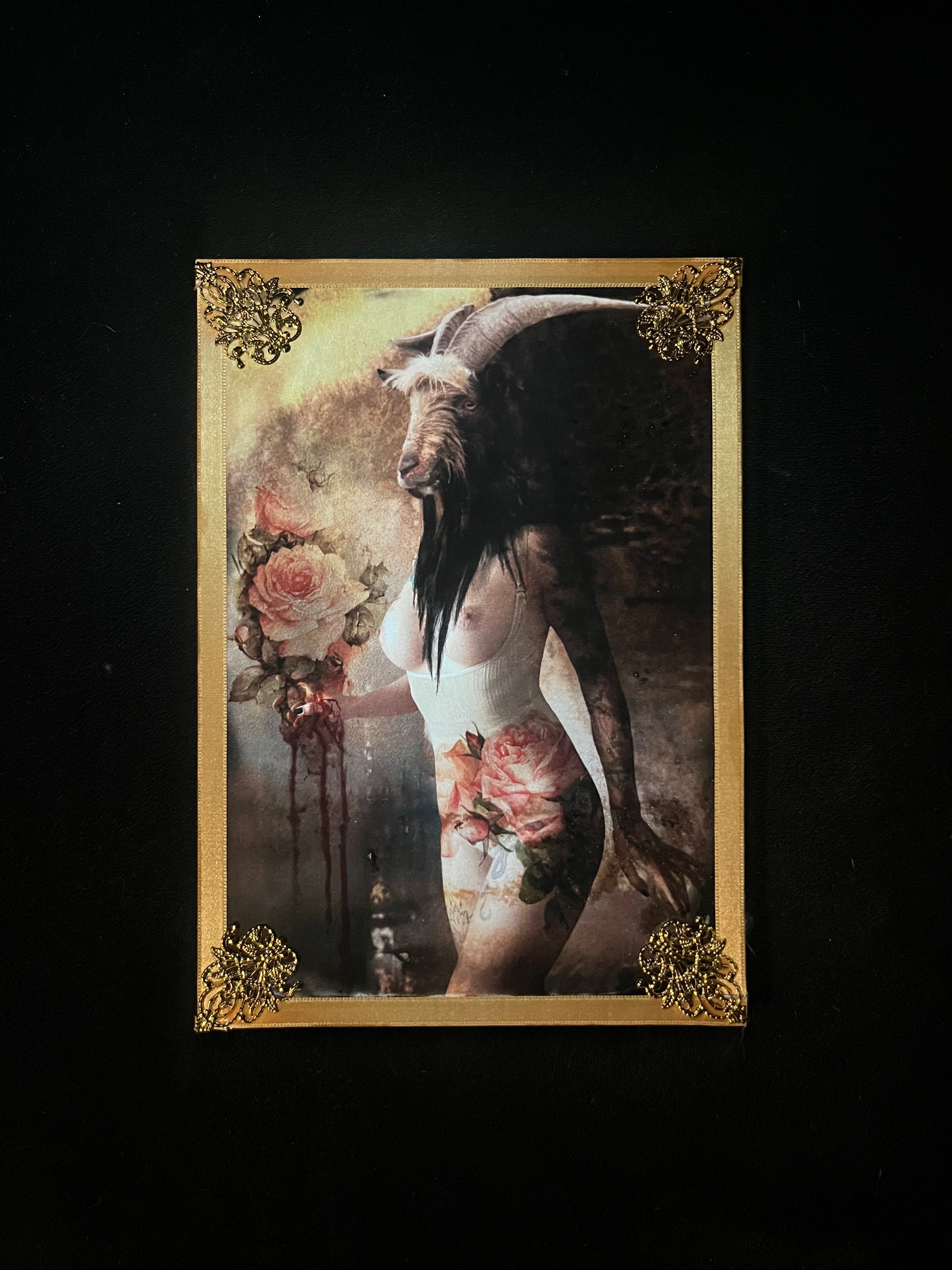 • Diseño Único: El fotocollage combina elementos de la iconografía clásica (como las rosas) con un simbolismo potente, creando una pieza visualmente impactante y llena de misterio.
